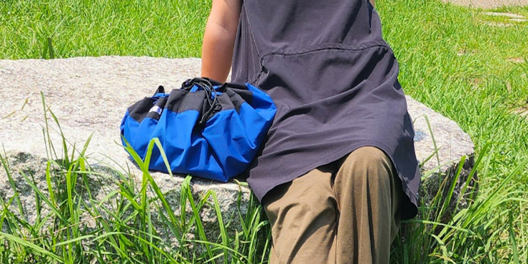 “izatoki®”のバッグには強度と耐久性に優れたキャンプ用ロープを採用。災害時の緊急対応にも頼れる仕様で、いざという時の安心を支えます。