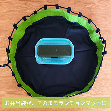 | 【特長】 | ▲ランチバッグ・お弁当袋として使えば、広げてランチョンマットに |