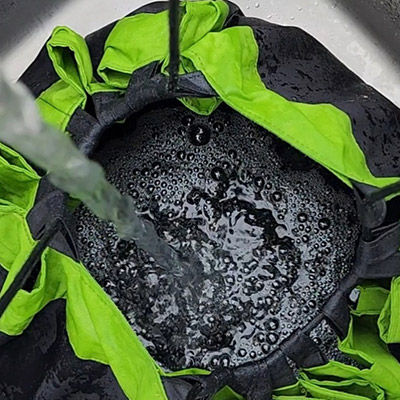 縫い目がなく漏れにくい設計で、水をためるバケツ代わりに使用できます。