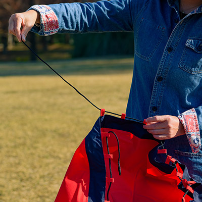 付属のロープは両端を結んで洗濯物を干すこともでき、使い方の幅が広がります。